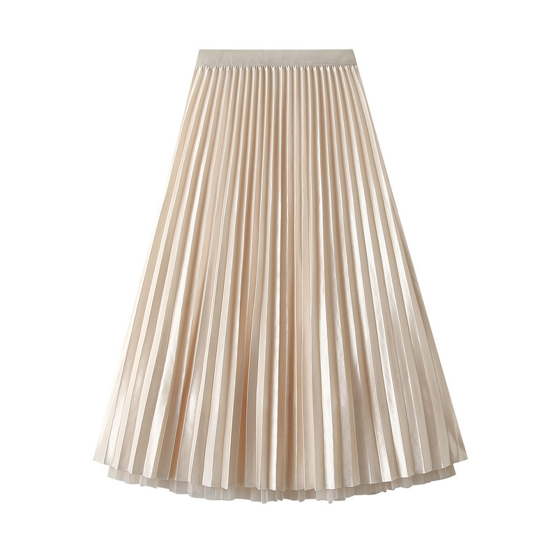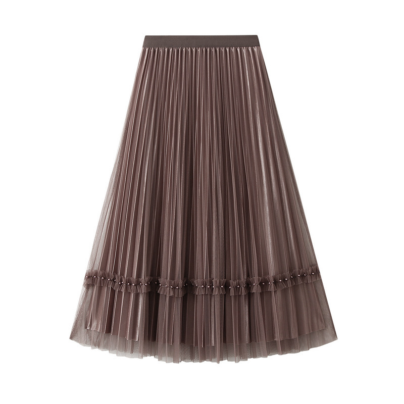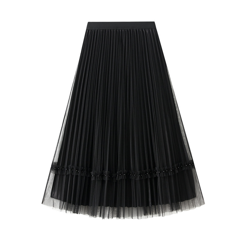夏季時尚百褶裙感韓版大擺網紗裙純色長裙a字垂感花邊半身裙