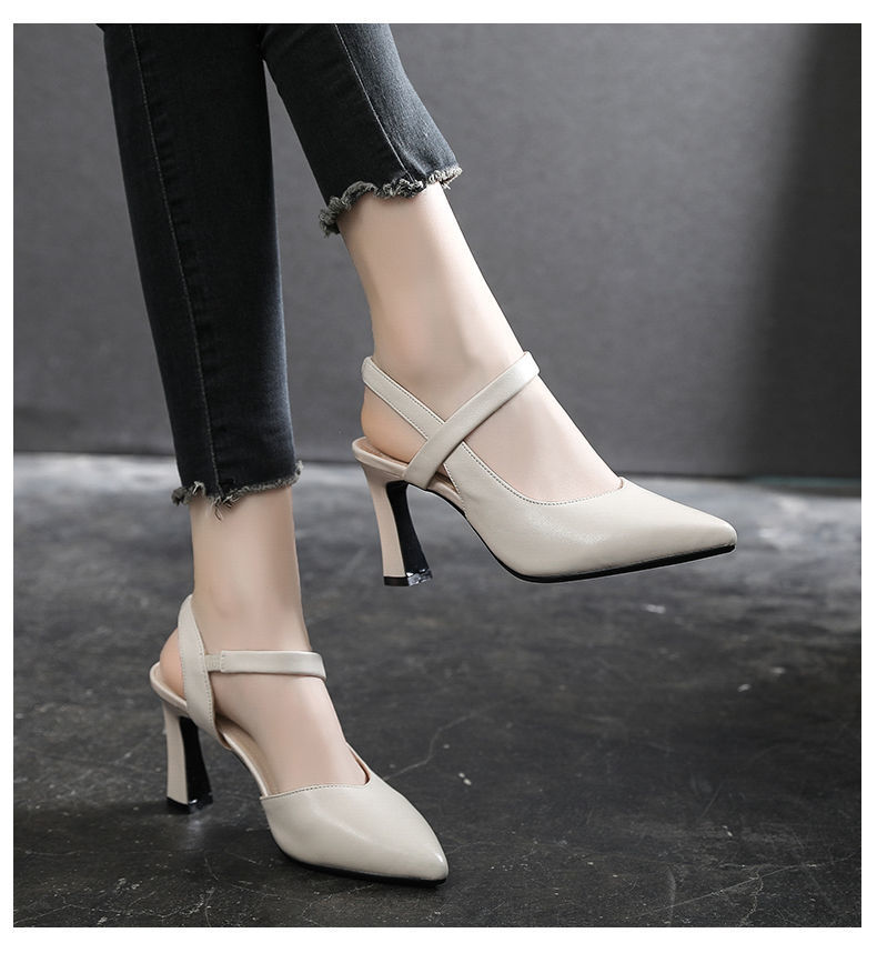 時尚單鞋涼鞋女夏季2023年新款春粗跟中跟軟皮包頭時裝女鞋高跟鞋