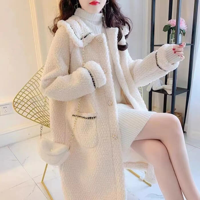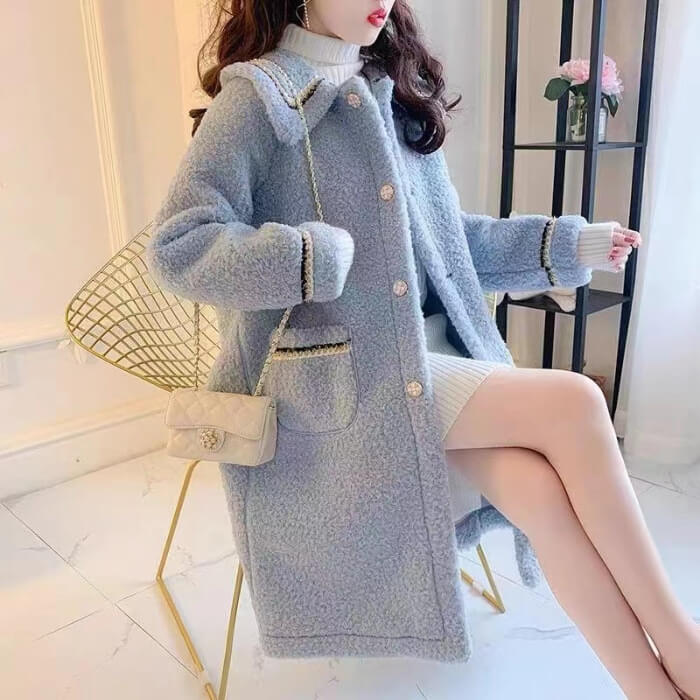 秋冬季加厚新款韓版中長款羊羔毛百搭小個子呢子大衣